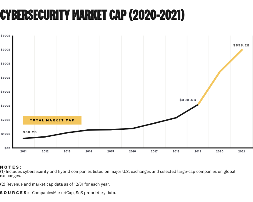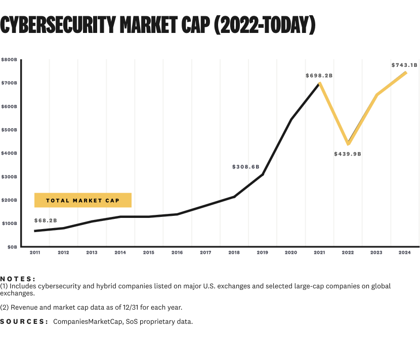 After a market-wide blip in 2022, cybersecurity's total market cap is back to levels higher than ever in 2024: