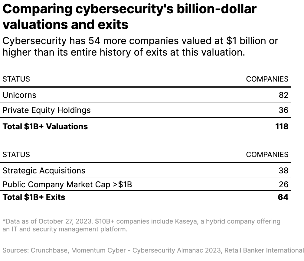 Cybersecurity has 82 unicorns — companies valued by investors at $1 billion or higher. There are more unicorns in cybersecurity today than the industry's entire history of IPOs and billion-dollar strategic acquisitions combined.